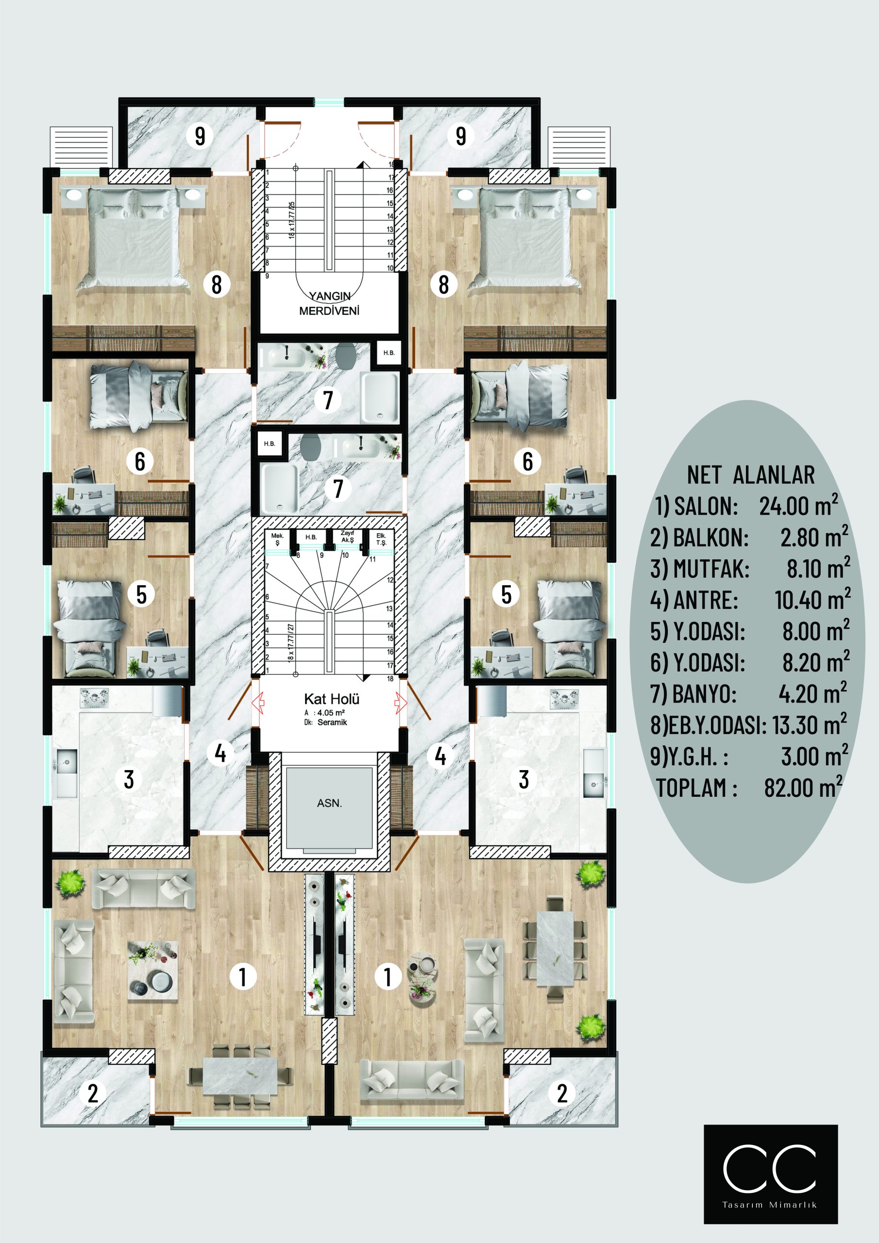 Cephe tasarımında, Göztepe’nin yerleşik karakteri ve mimari ölçeği dikkate alınarak sade, uyumlu ve zamansız bir ifade benimsenmiştir. Malzeme seçimleri, bölgenin dokusuyla bütünlük sağlayacak şekilde titizlikle yapılmış; renk paleti ve cephe ritmi yapıya hem estetik hem de mekânsal denge kazandırmıştır. İç mekânlarda doğal ışığın verimli kullanımı, ferah hacimler ve ergonomik planlama ön planda tutularak konforlu, esnek ve kullanıcı odaklı yaşam alanları oluşturulmuştur.
