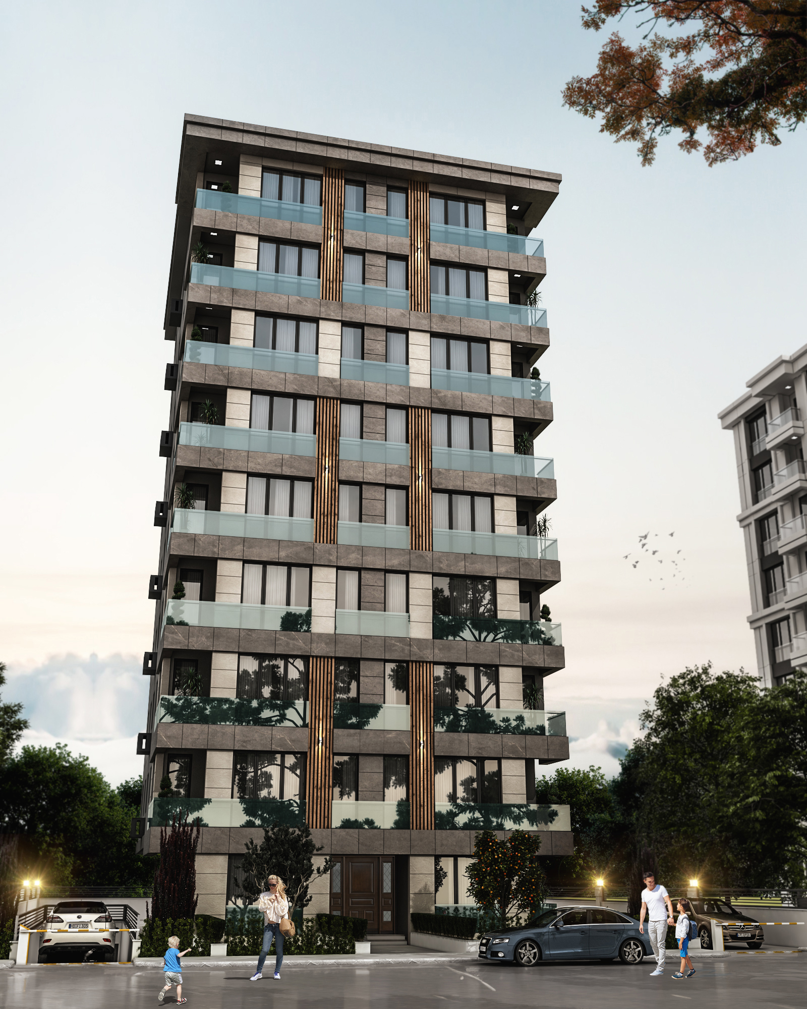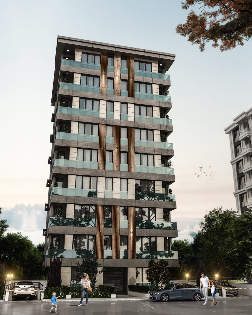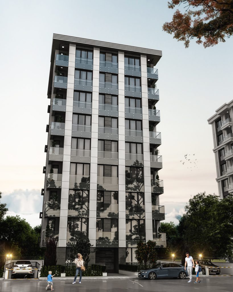Cephe tasarımında, bölgenin mimari kimliğiyle uyumlu malzeme ve renk seçimi ön plana çıkarılmış; sade, zarif ve zamansız bir dış görünüm yaratılmıştır. Yalın geometrik formlar ve ritmik cephe düzenlemeleri, hem yapının karakterini vurgulamakta hem de çevresiyle dengeli bir bütünlük oluşturmaktadır. İç mekânlarda doğal ışığın etkin kullanımı, ferah hacim planlamaları ve ergonomik tasarım ilkeleri doğrultusunda, kullanıcı deneyimini zenginleştiren yaşam ve çalışma alanları tasarlanmıştır.