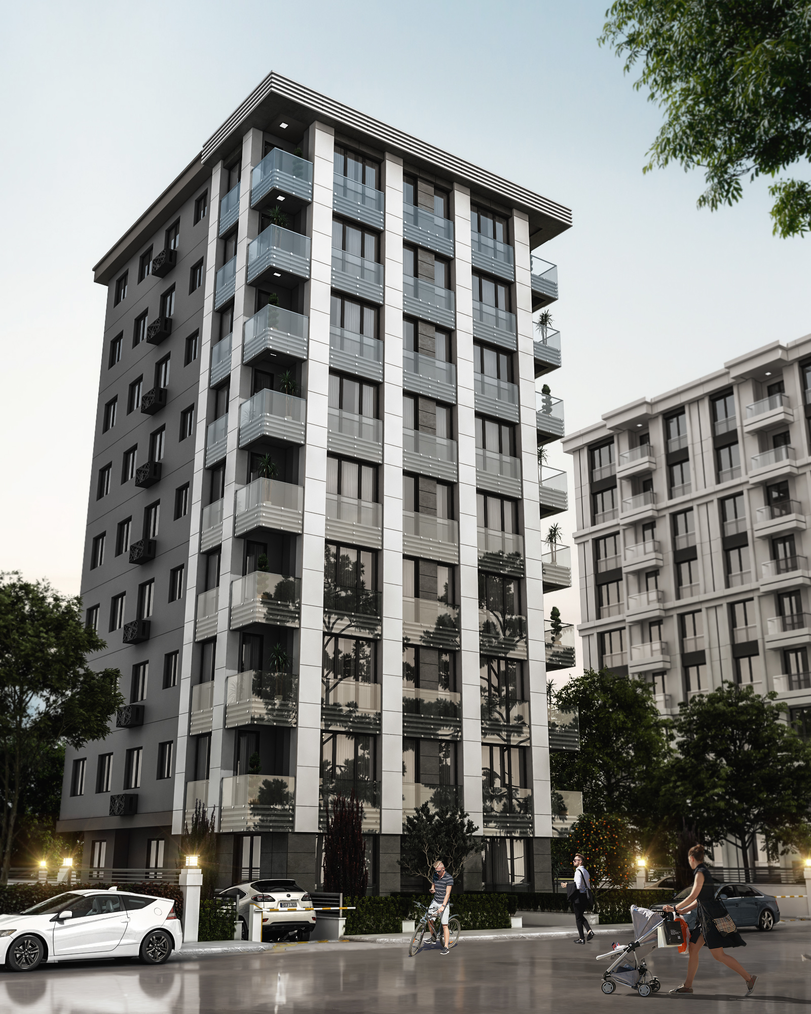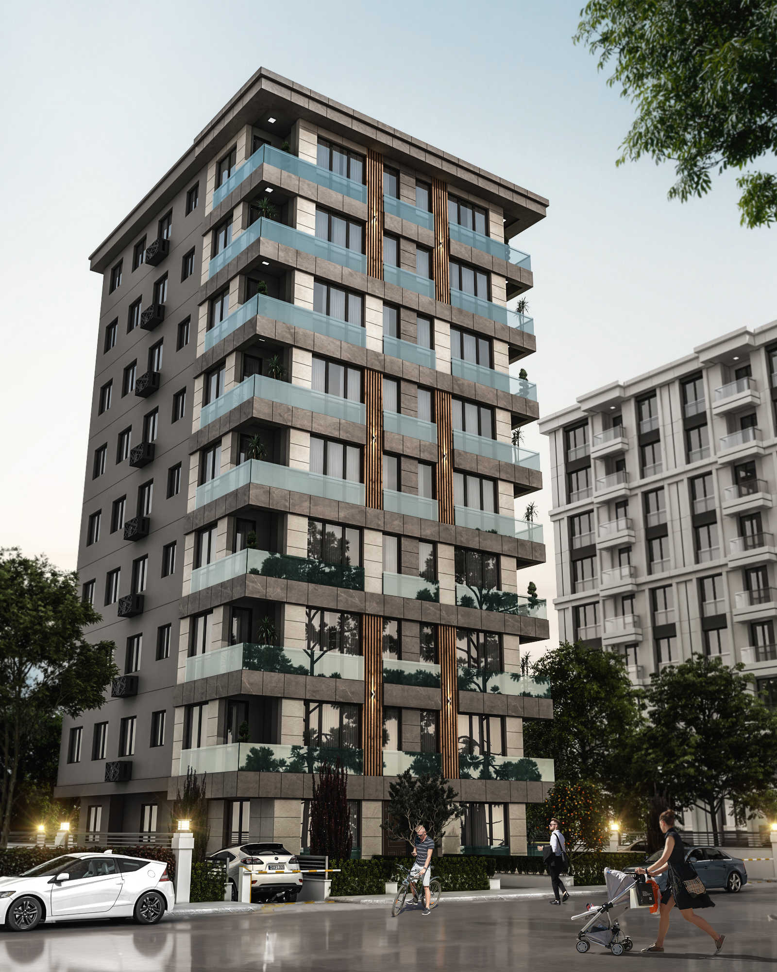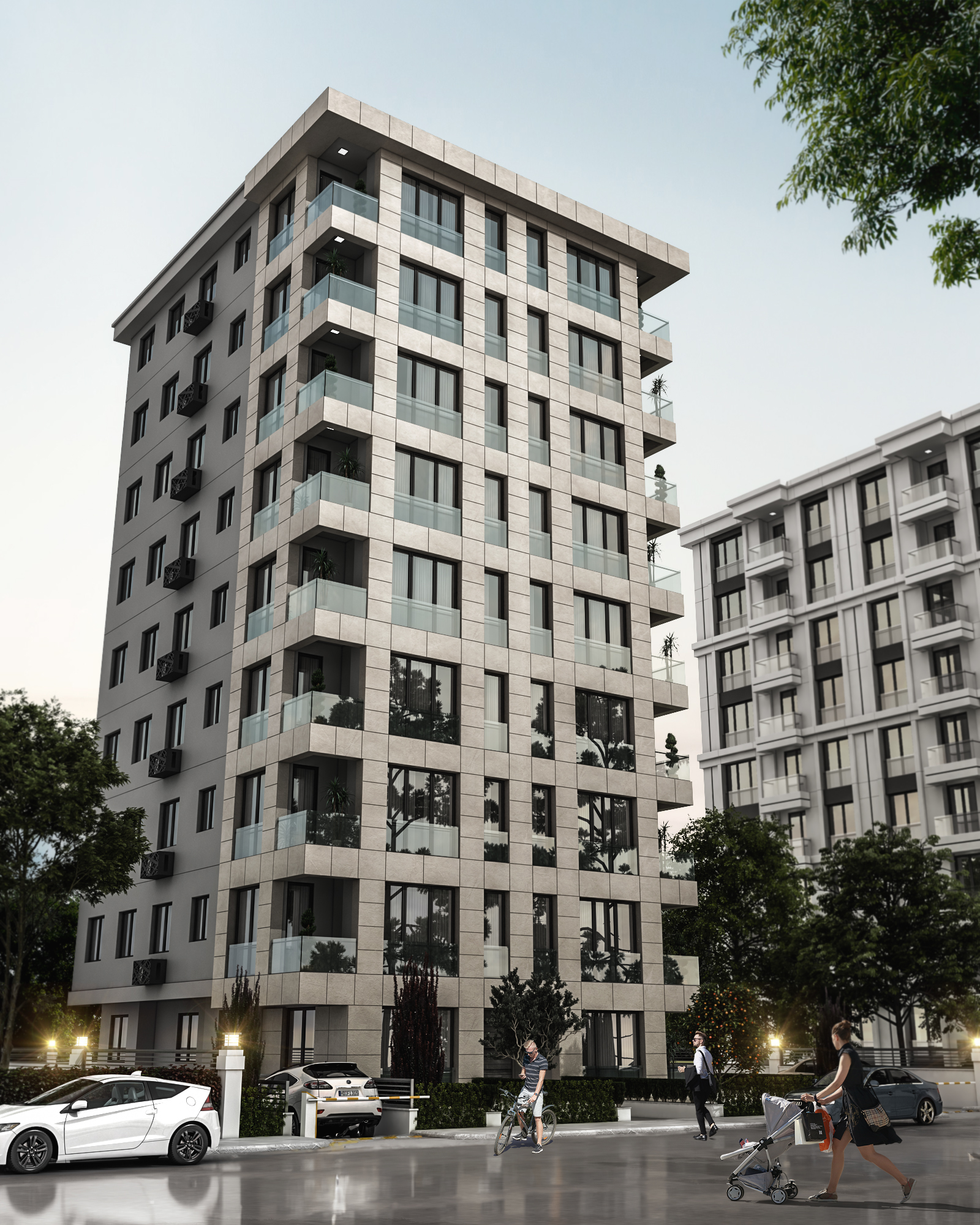 Cephe tasarımında, bölgenin mimari kimliğiyle uyumlu malzeme ve renk seçimi ön plana çıkarılmış; sade, zarif ve zamansız bir dış görünüm yaratılmıştır. Yalın geometrik formlar ve ritmik cephe düzenlemeleri, hem yapının karakterini vurgulamakta hem de çevresiyle dengeli bir bütünlük oluşturmaktadır. İç mekânlarda doğal ışığın etkin kullanımı, ferah hacim planlamaları ve ergonomik tasarım ilkeleri doğrultusunda, kullanıcı deneyimini zenginleştiren yaşam ve çalışma alanları tasarlanmıştır.
