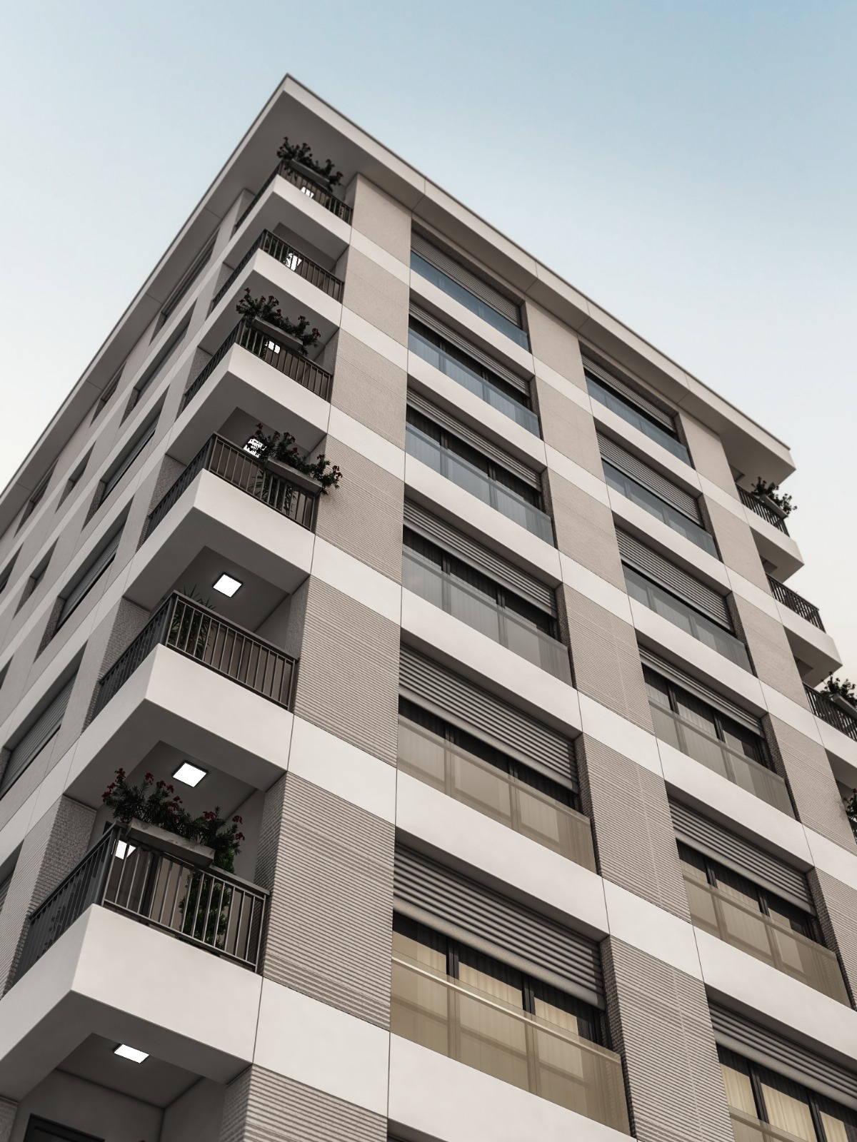Cephe tasarımında, bölgenin mimari kimliği ve çevresel karakteri ile uyumlu malzeme ve renk seçimleri tercih edilmiş; sade, zarif ve zamansız bir dış görünüm elde edilmiştir. Yalın geometriler ve ritmik cephe kurgusu, hem yapının karakterini öne çıkarırken hem de çevresiyle dengeli bir bütünlük sağlamaktadır. İç mekânlarda doğal ışığın etkin kullanımı, ferah hacim planlamaları ve ergonomik tasarım ilkeleri doğrultusunda, kullanıcı deneyimini zenginleştiren yaşam alanları oluşturulmuştur.